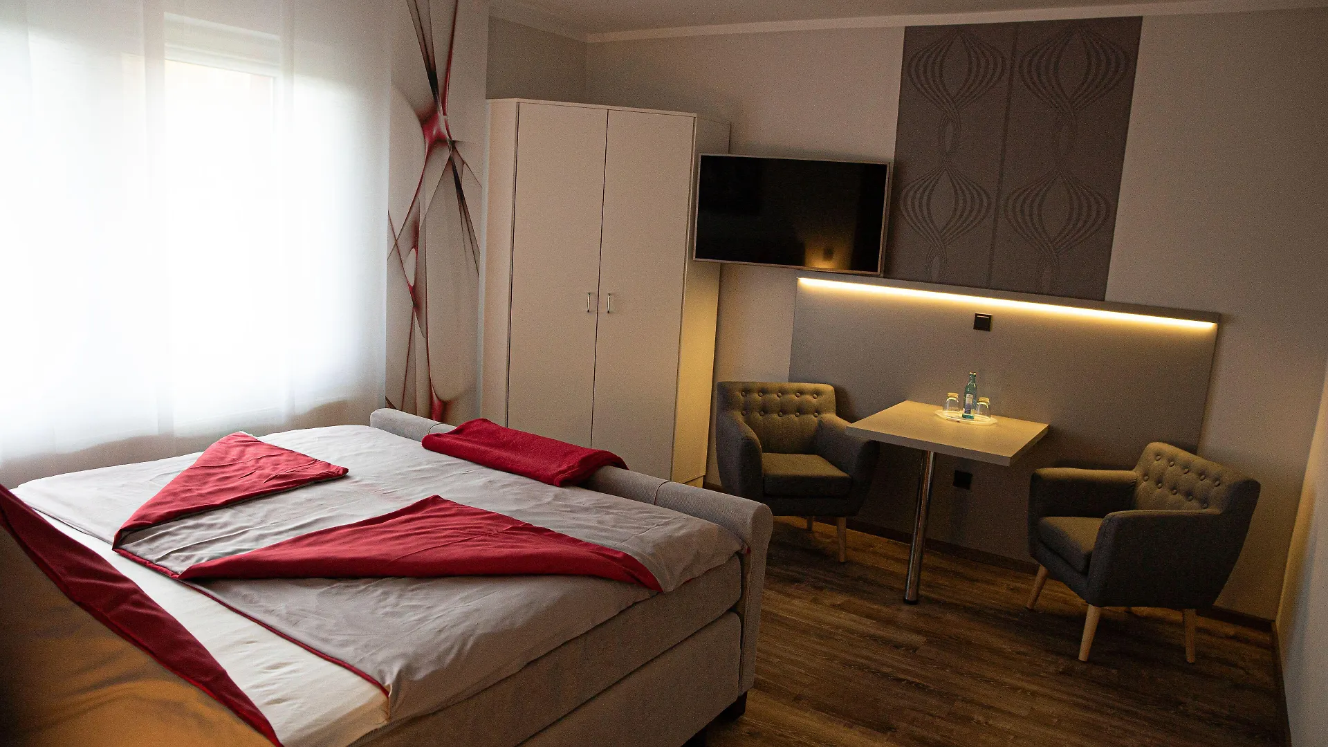 Das Pension Rüssel-Pub verfügt über 7 Gästezimmer, die über eine Sitzecke verfügen sowie mit einem Schrank ausgestattet sind. Diese Zimmer haben Parkettböden.